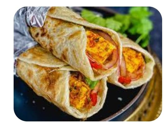 These rolls are also known as the wrap, that has just roasted chicken wrapped in a healthy whole wheat plain paratha (traditional Indian bread). Perfect for a lunch break.